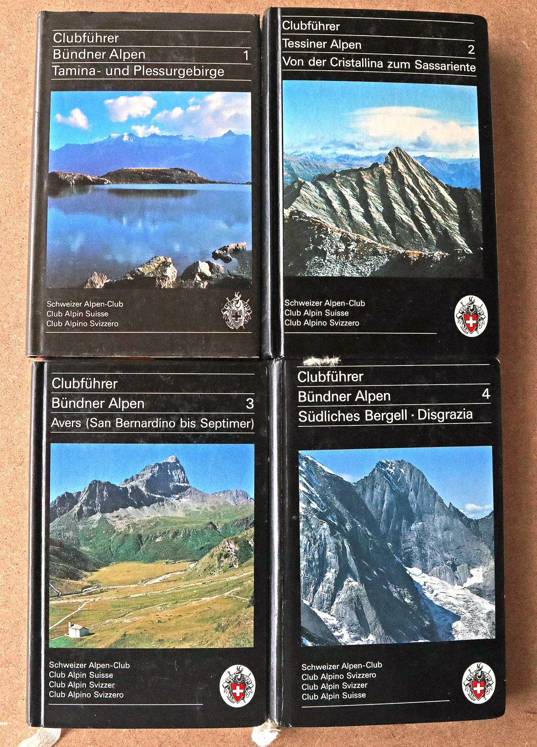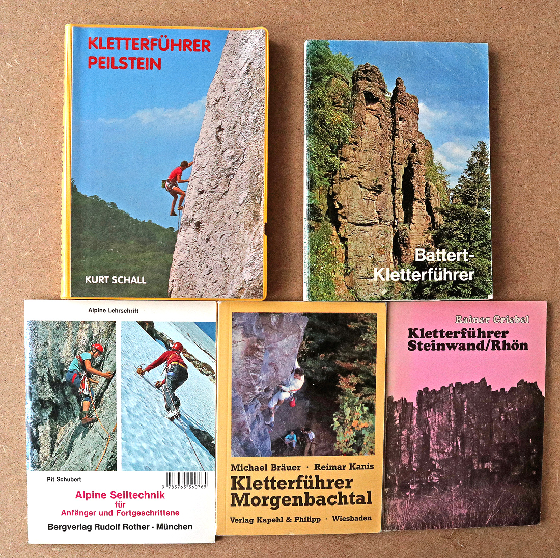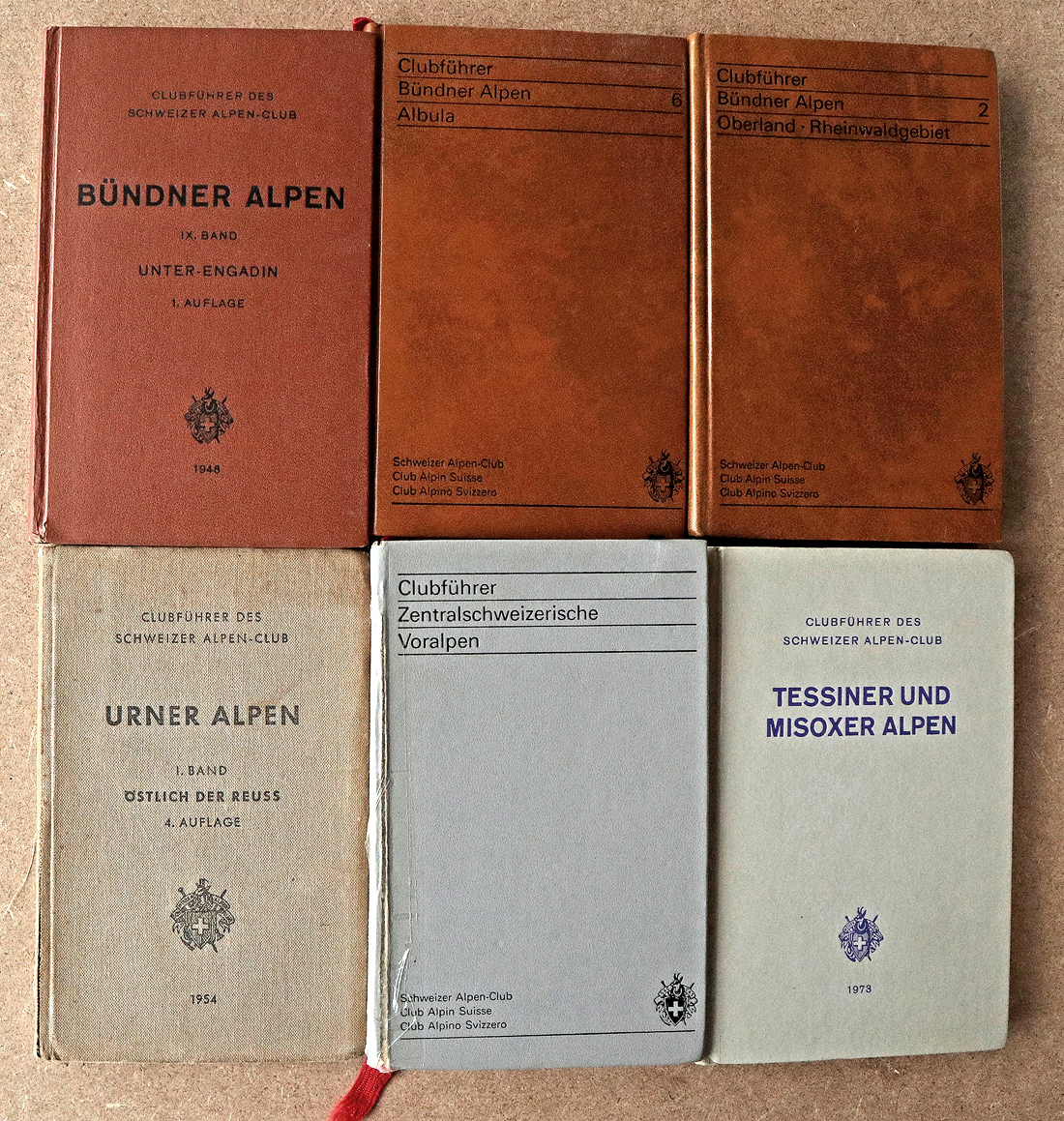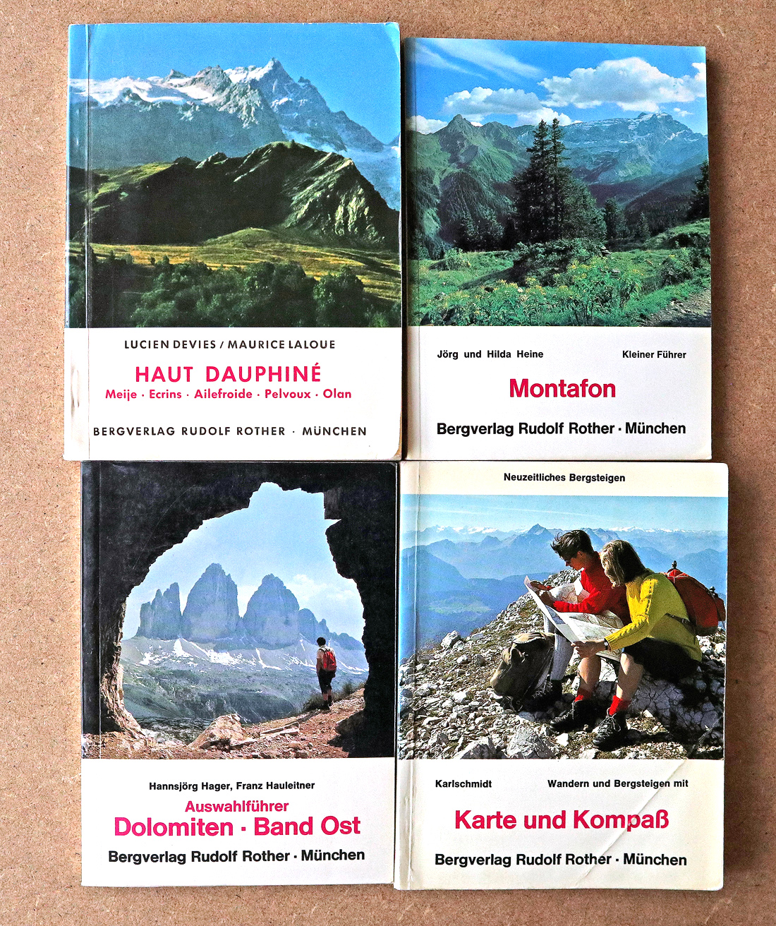 Hier ein Überblick, was sich im Laufe der Jahre an Büchern angesammelt hat. Die Historie unserer Touren spiegelt sich im „Vergilbungsgrad“ dieser Bände wider. Die ersten 20 Jahre waren wir fast ausschliesslich in Österreich, für diese Führerliteratur steht massgeblich der „Rotherverlag“. Von 2000 bis fast 2010 folgte unsere „Schweizer Episode“, begleitet vom noch wenig vergilbten Führerwerk des Schweizer Alpen-Club 😉